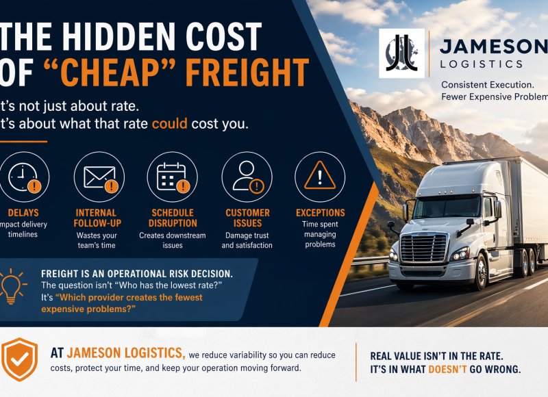 As we begin a new year, we want to take a moment to thank our customers for continuing to trust Jameson Logistics with their freight. Strong partnerships are the foundation of what we do, and we’re proud of the momentum we’ve built together. A new year is always a good time to reflect, plan ahead, and make sure your logistics strategy is aligned with your business goals. At Jameson Logistics, our focus remains on doing what we’ve always done—reliably and consistently—while continuing to refine how we support our customers.